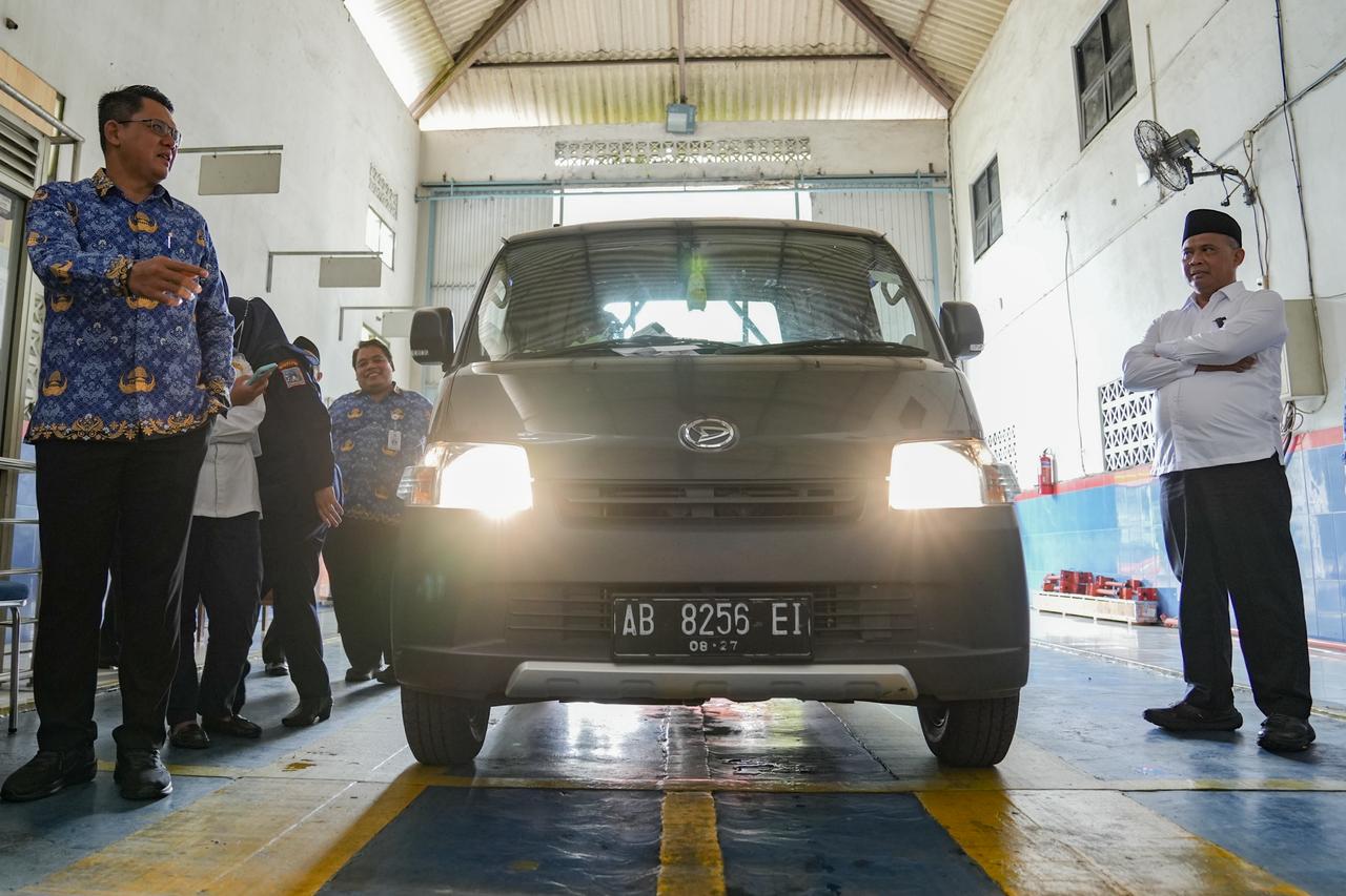 Selain memberikan arahan, Bupati dan Wakil Bupati Sleman juga meninjau secara langsung layanan uji KIR di Kantor Dishub Sleman.