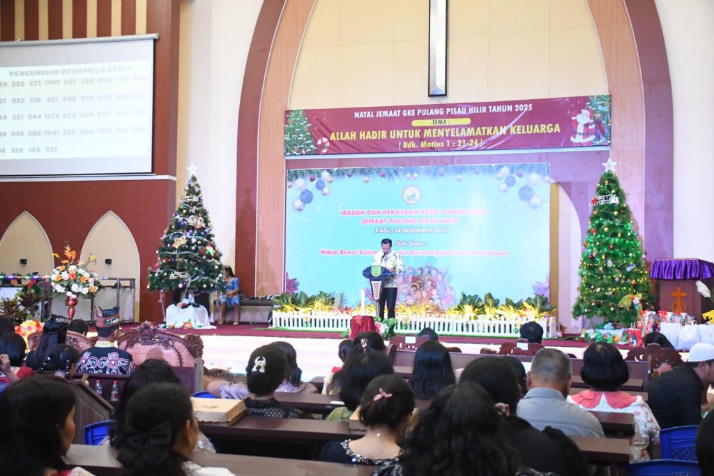 PULANG PISAU, isuenasional – Bupati Pulang Pisau, Ahmad Rifa’i, bersama Wakil Bupati Ahmad Jayadikarta menghadiri Safari Natal Pemerintah Kabupaten Pulang Pisau yang digelar di Gereja Victoria, Kecamatan Kahayan Hilir, Rabu malam (24/12/2025).
