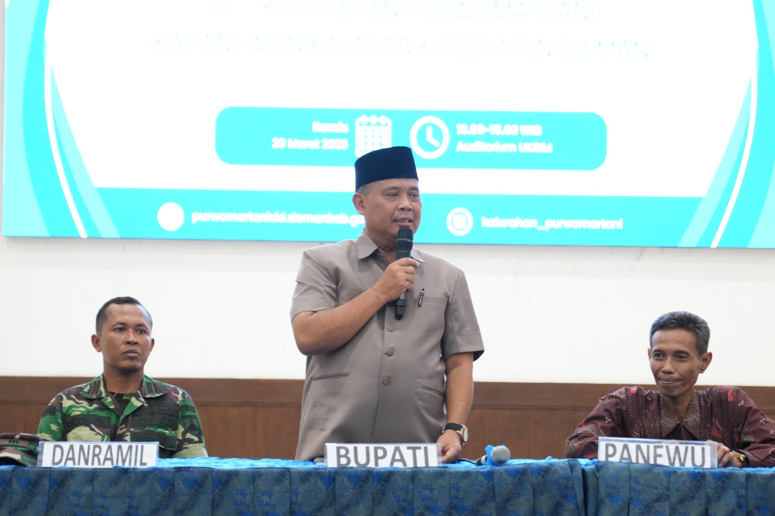 Selain itu, Bupati Harda juga mengingatkan kepada seluruh RT dan RW di Kalurahan Purwomartani untuk tidak hanya fokus pada aspek pembangunan fisik, tetapi juga memperhatikan faktor keamanan dan ketertiban masyarakat (Kamtibmas). Ia mengingatkan pentingnya kewaspadaan, terutama pada malam hari, mengingat kerawanan sering meningkat pada waktu tersebut.